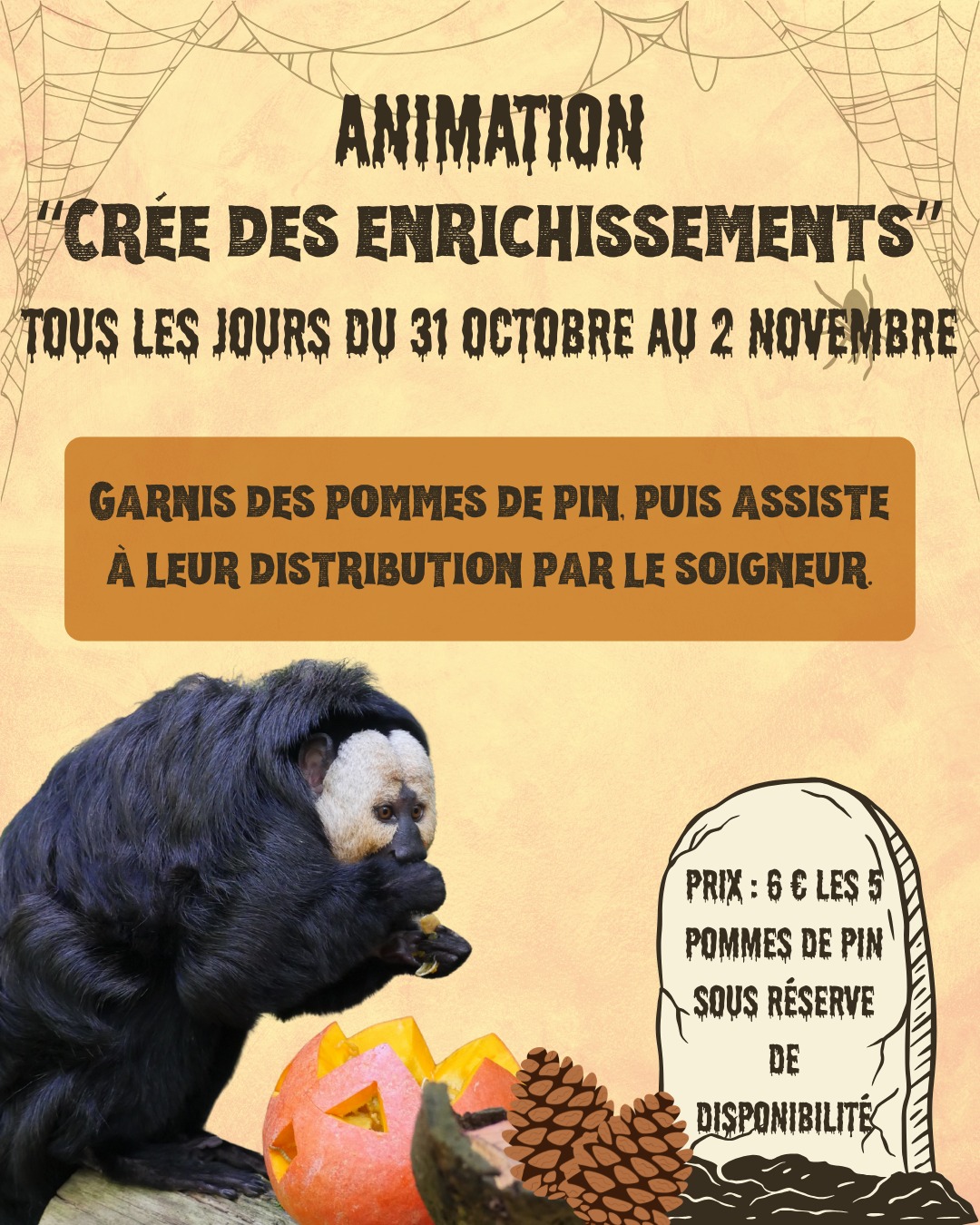 Garnis des pommes de pin, puis assiste à leur distribution par le soigneur.