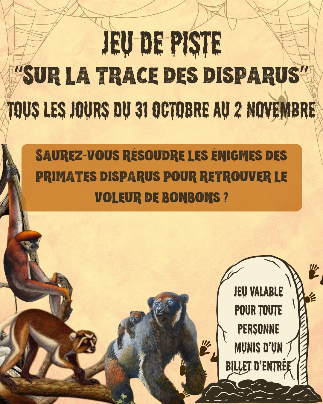 Sauriez-vous résoudre les énigmes des primates disparus pour retrouver le voleur de bonbons? Jeu valable pour toute personne munis d'un billet d'entrée.
