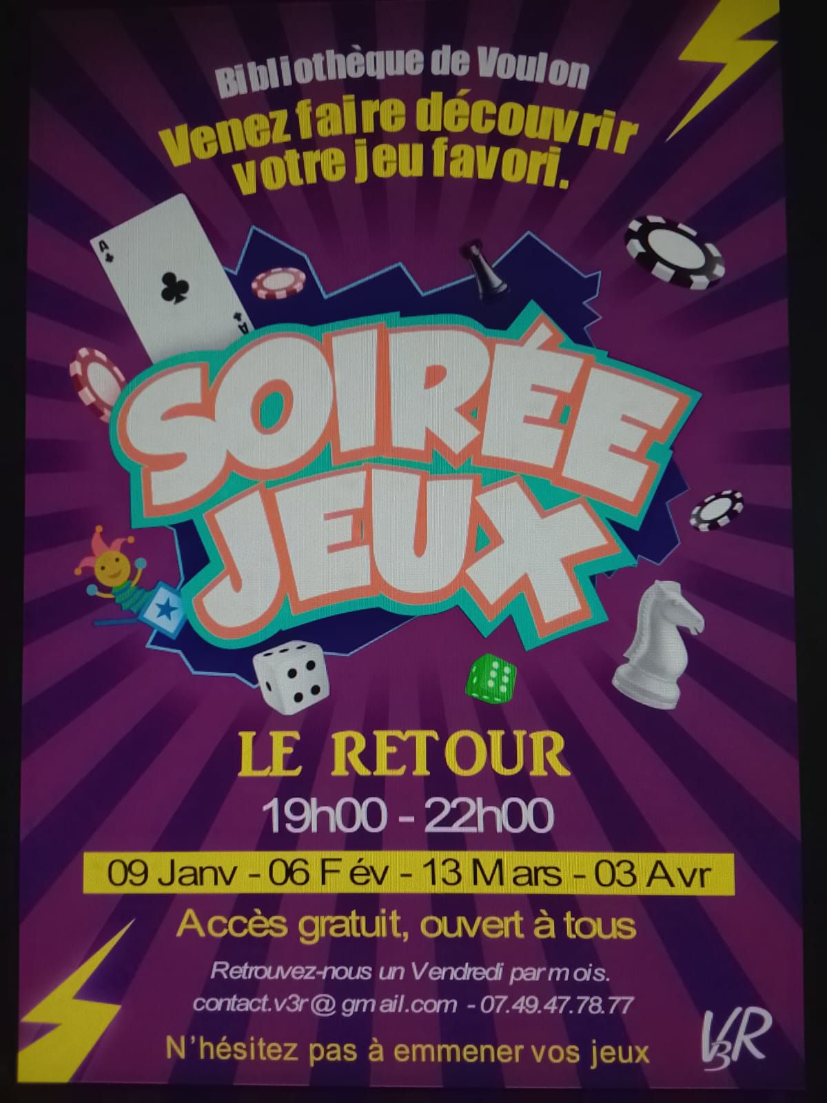 4eme soirée jeux de l'année, gratuite sans inscription. Venez quand vous voulez et le temps que vous souhaitez. Tout le monde est le bienvenu pour passer un super moment convivial et ludique.